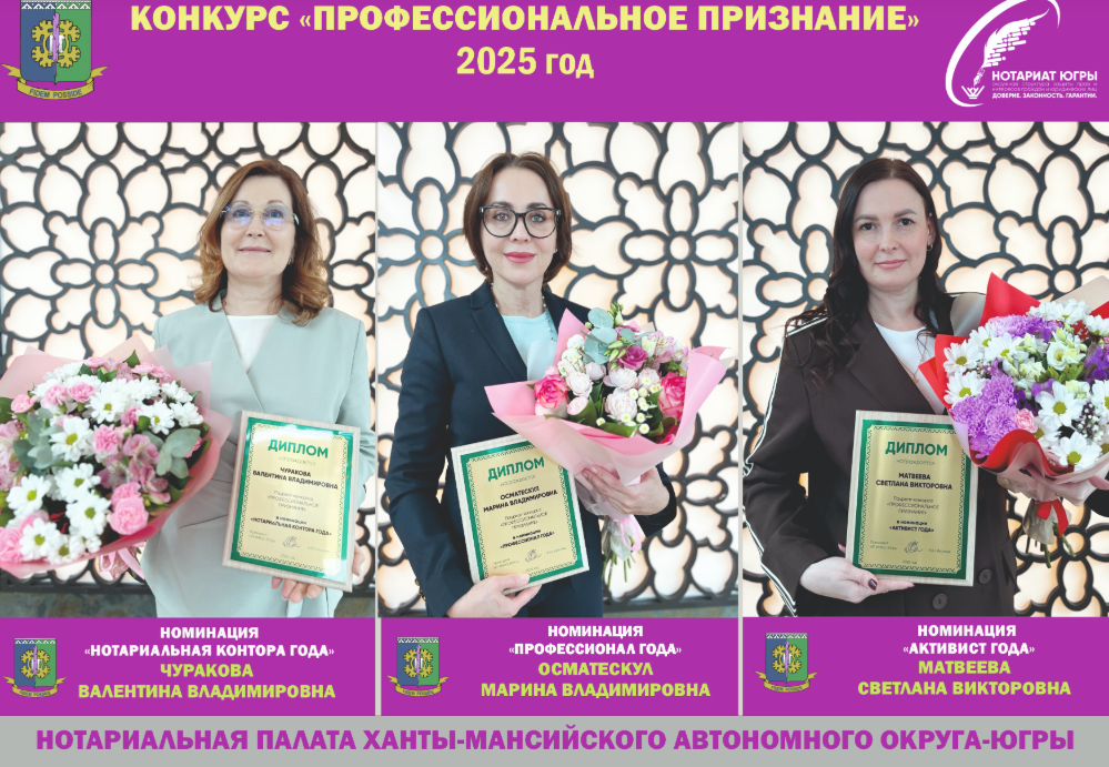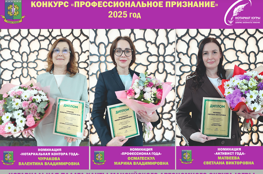 В Югре в рамках годового Общего собрания членов Нотариальной палаты Югры, состоявшегося на днях, состоялось подведение итогов и награждение победителей профессионального конкурса нотариусов «Профессиональное признание» по итогам 2025 года.