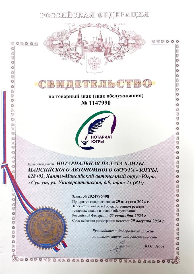 Нотариальная палата Ханты-Мансийского автономного округа-Югры успешно зарегистрировала логотип (товарный знак) «Нотариат Югры» в Федеральной службе по интеллектуальной собственности (Роспатент).